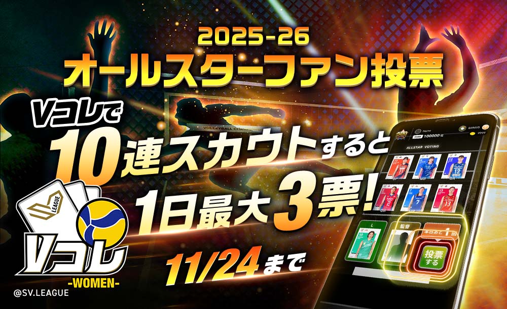 「エムット presents SV.LEAGUE ALL STAR GAMES 2025-26 KOBE」出場選手を決めるのはあなたの1票!SV.LEAGUE公式カードコレクション「Vコレ -WOMEN-」にて投票受付中