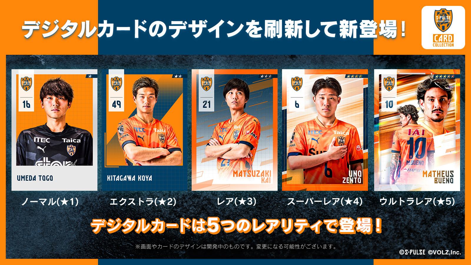 プロスポーツチームやリーグ向けのデジタルトレーディングカードサービスを開発・運営している株式会社VOLZ(本社:東京都渋谷区、代表取締役:池田 宗多朗、以下VOLZ)は、株式会社エスパルス(本社:静岡県静岡市、代表取締役社長:山室 晋也)と共同で提供している公式デジタルカードコレクションサービス「清水エスパルスカードコレクション(略称:エスパコレ)」において、2026年2月から開始する新しいシーズンのサービスを開始いたしました。