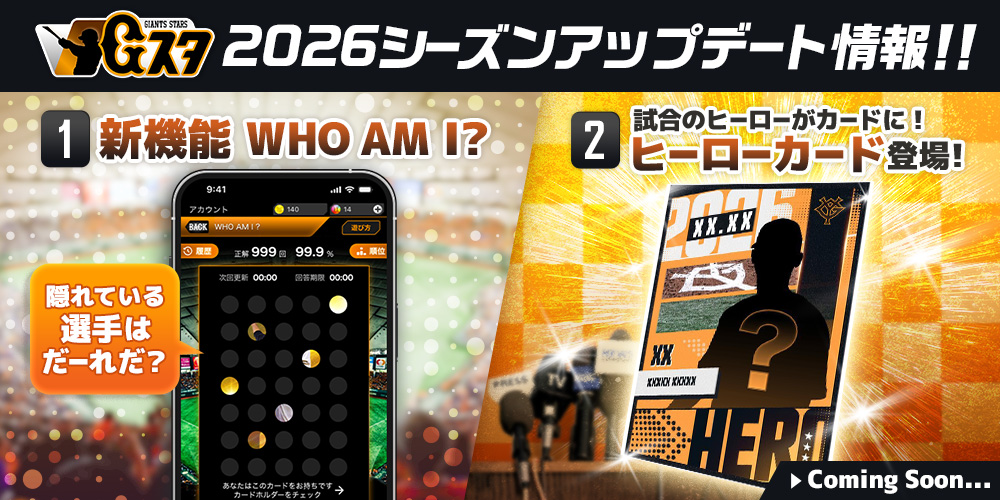 読売巨人軍公認デジタルカードコレクション 「ジャイアンツ・スターズ」2026年シーズン始動 新デザインカードに、新機能も追加! 2026年シーズンリリースを記念して限定カードプレゼント!